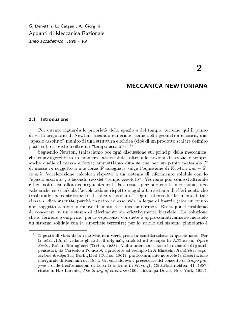 spazio assoluto, e facendo uso del tempo assoluto. Vedremo poi, come daltronde