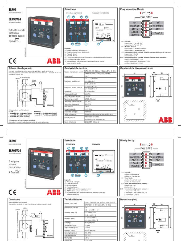 ELR96: 110, 230, 400 V ca / 110 V cc (20%); 50-60Hz