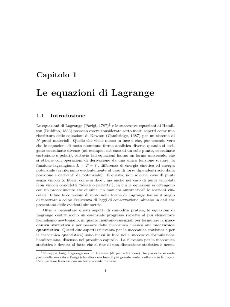 Le equazioni di Lagrange (Parigi, 1787)1 e le successive equazioni di Hamilton (Dublino, 1833) possono essere considerate sotto molti aspetti come una