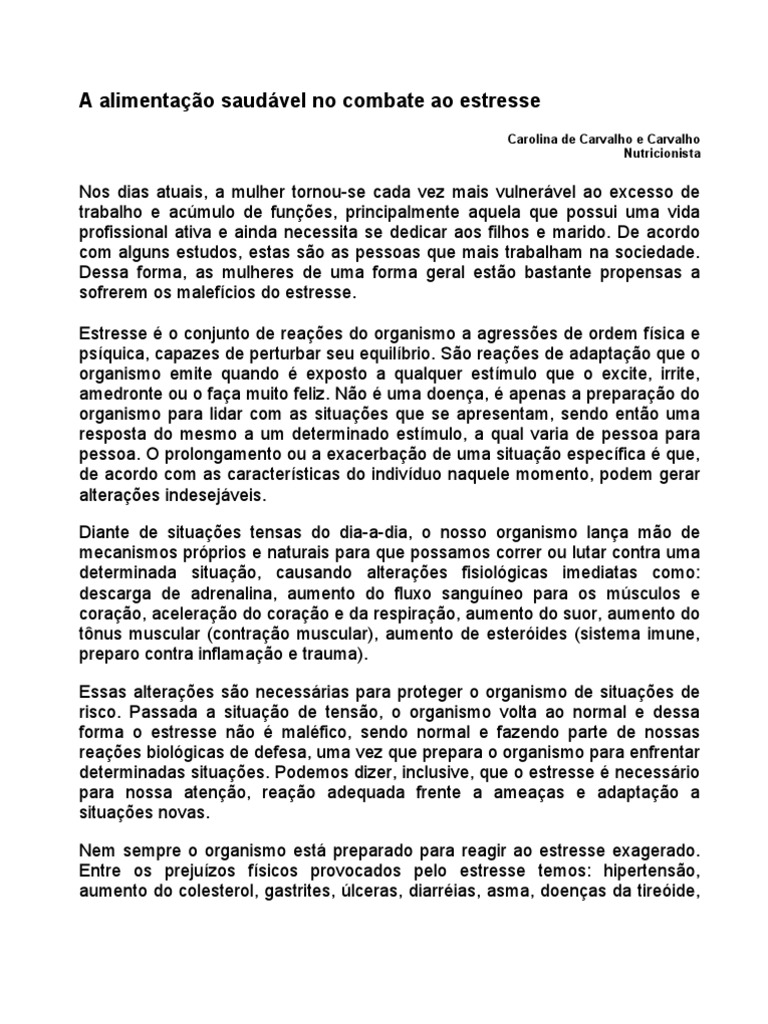 sofrerem os malefícios do estresse.