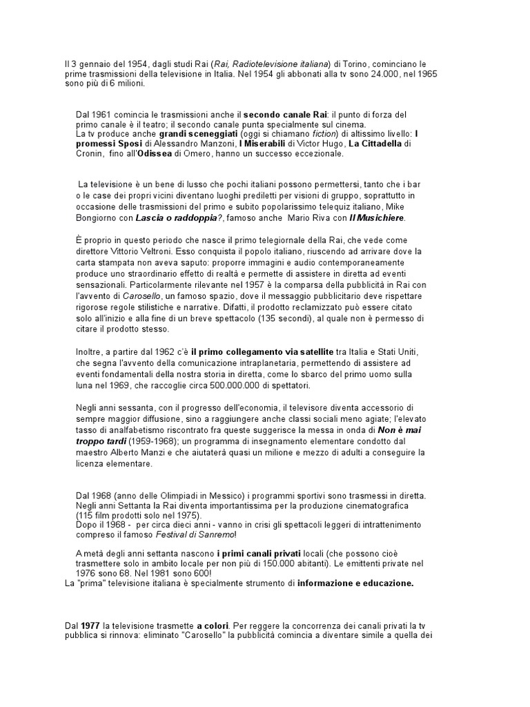 La "prima" televisione italiana specialmente strumento di informazione e educazione.
