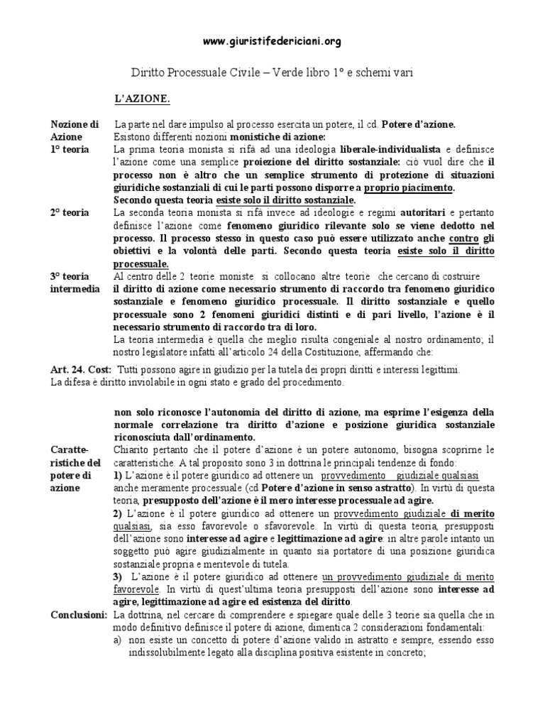 lazione come una semplice proiezione del diritto sostanziale: ci vuol dire che il