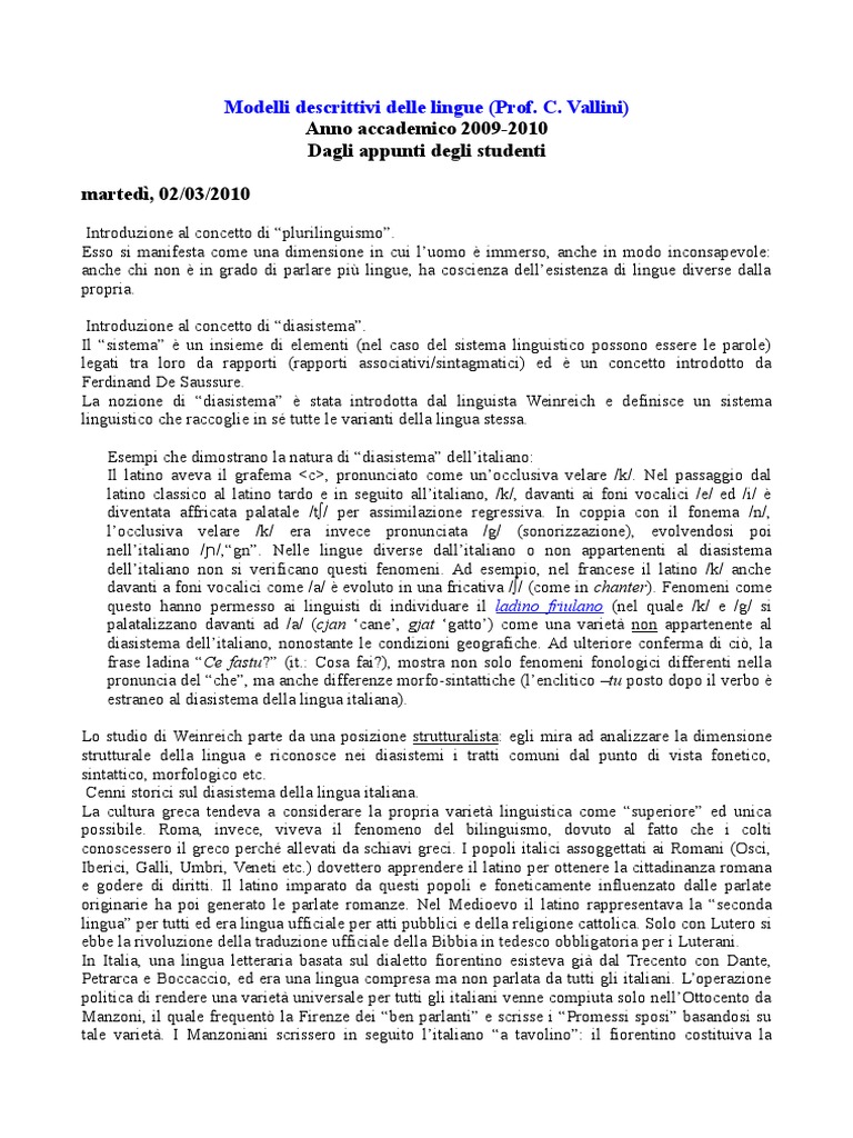 Modelli Descrittivi Delle Lingue