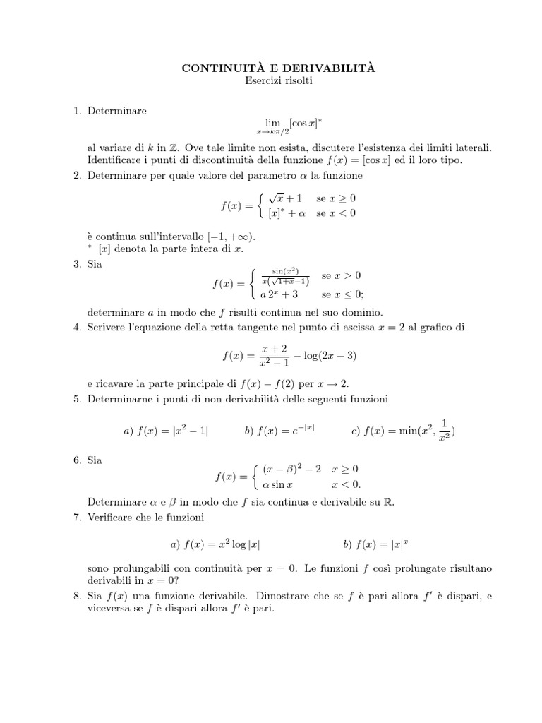 al variare di k in Z. Ove tale limite non esista, discutere lesistenza dei limiti laterali.