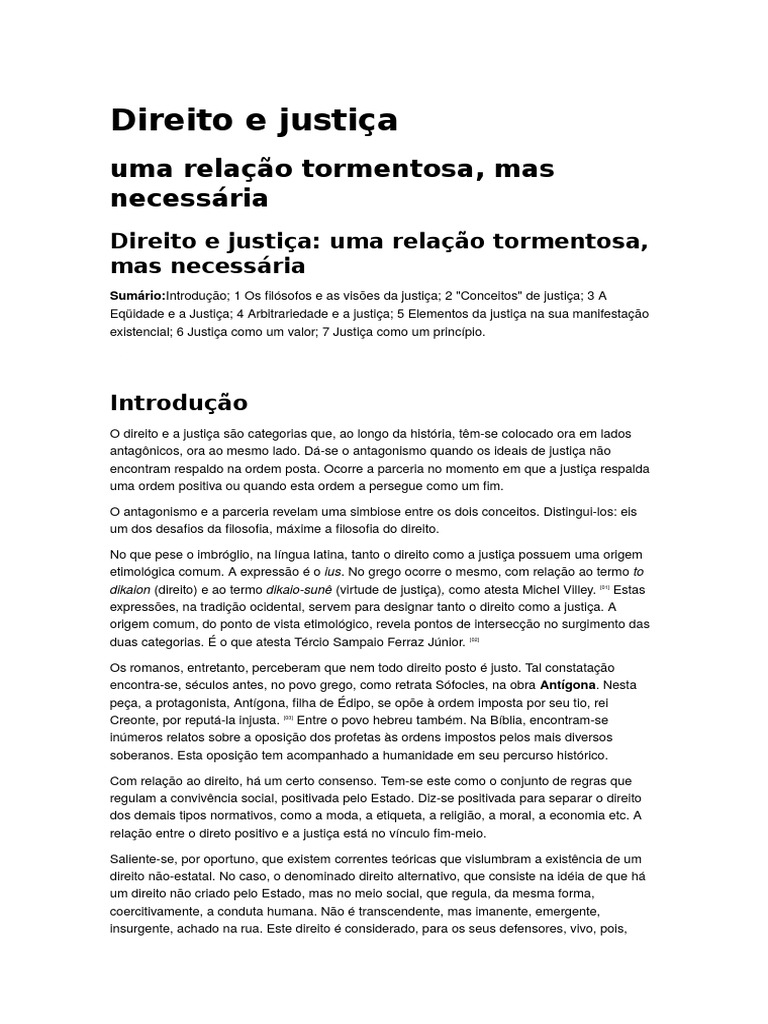 Sumrio:Introduo; 1 Os filsofos e as vises da justia; 2 "Conceitos" de justia; 3 A