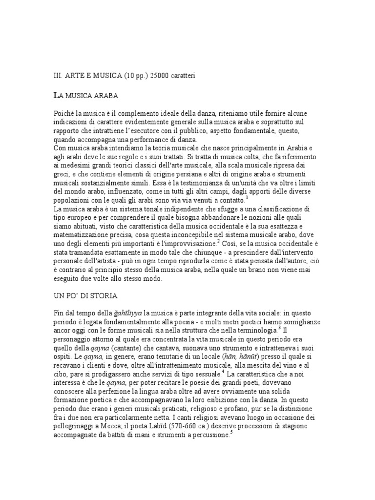 indicazioni di carattere evidentemente generale sulla musica araba e soprattutto sul