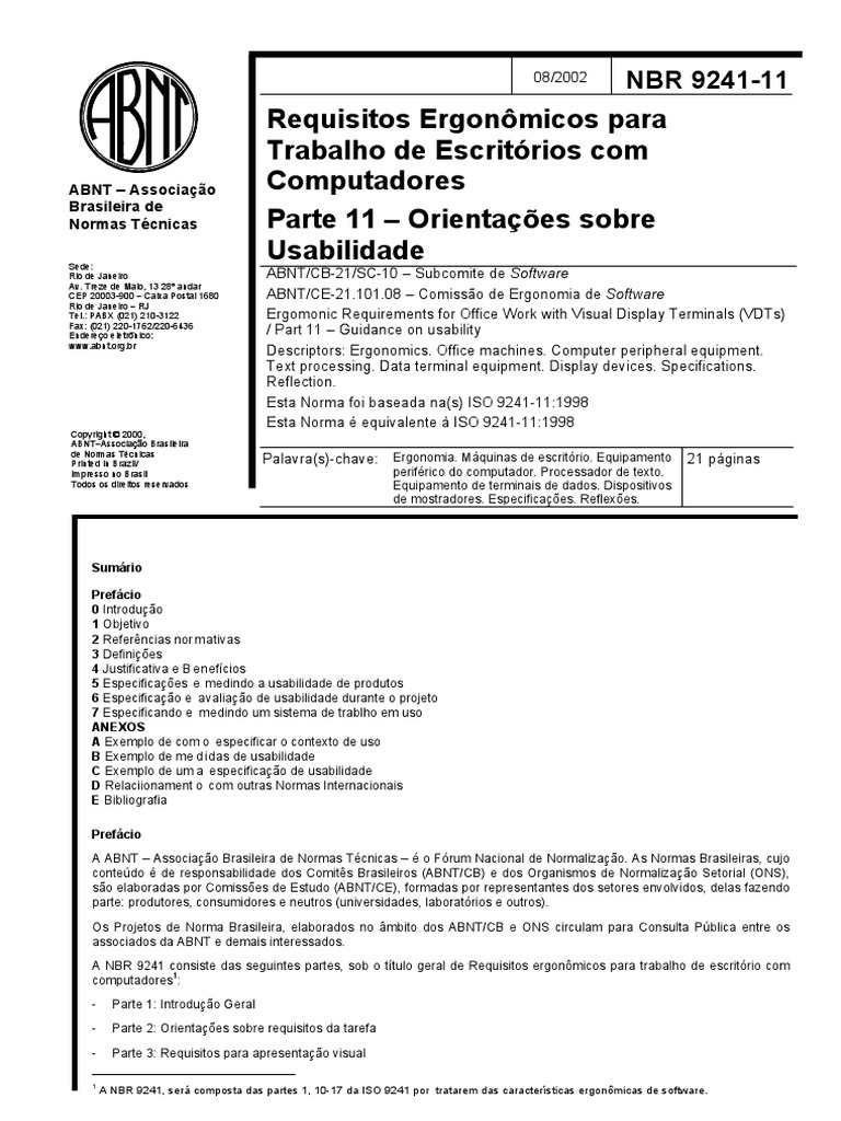 A ISO 9241-11 aplica-se ao trabalho de escritrio com computadores. Ela tambm pode ser aplicada em outras situaes