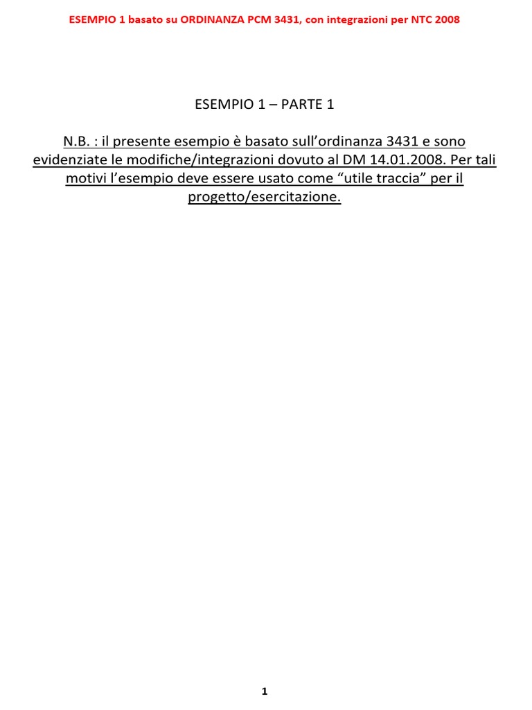 ESEMPIO 1 basato su ORDINANZA PCM 3431, con integrazioni per NTC 2008