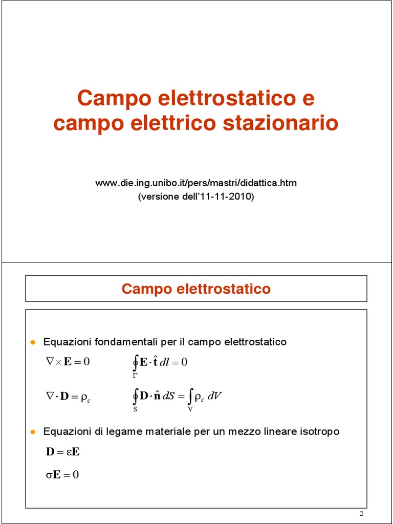 Equazioni fondamentali per il campo elettrostatico
