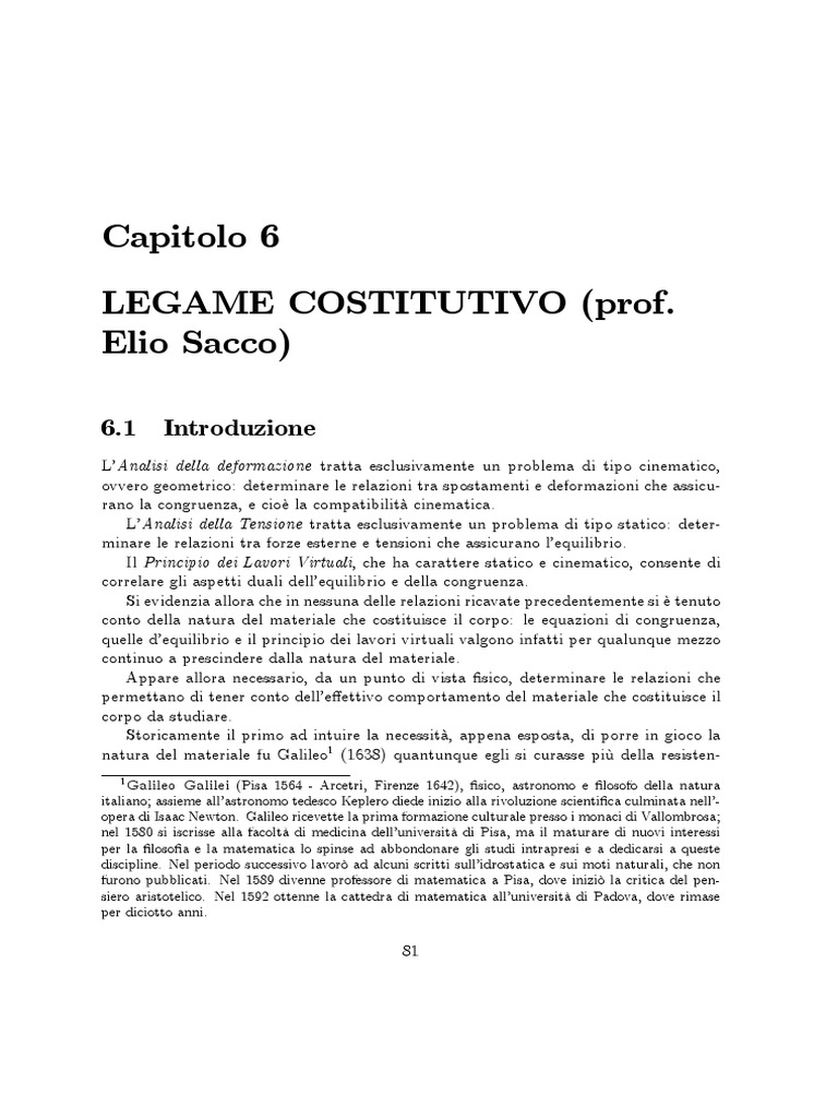 natura del materiale fu Galileo1 (1638) quantunque egli si curasse pi della resisten1