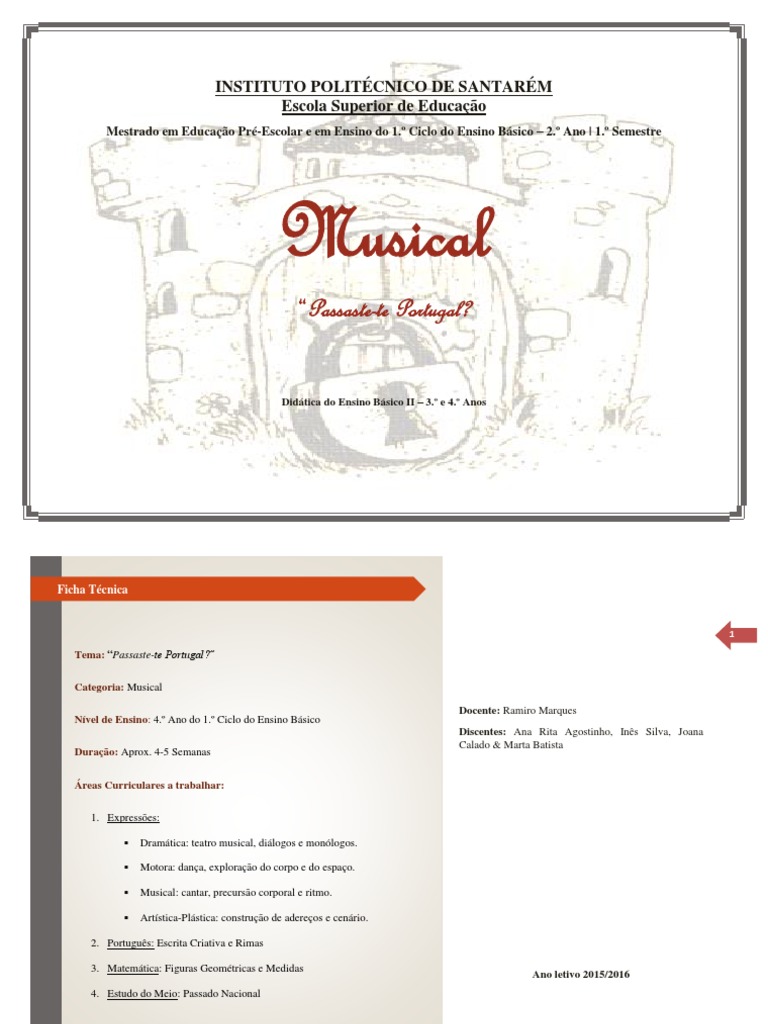 1. A atividade: o professor explica aos alunos em que consiste a atividade, mostrando vários exemplos de musicais, para que os alunos