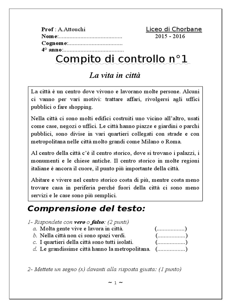 Comprensione del testo:
