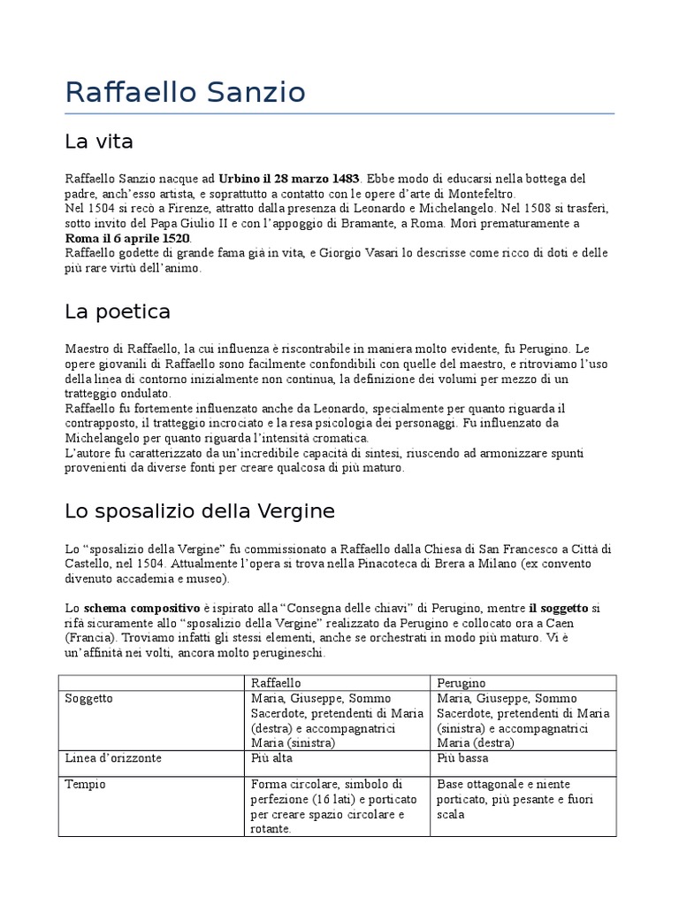 Maestro di Raffaello, la cui influenza riscontrabile in maniera molto evidente, fu Perugino. Le