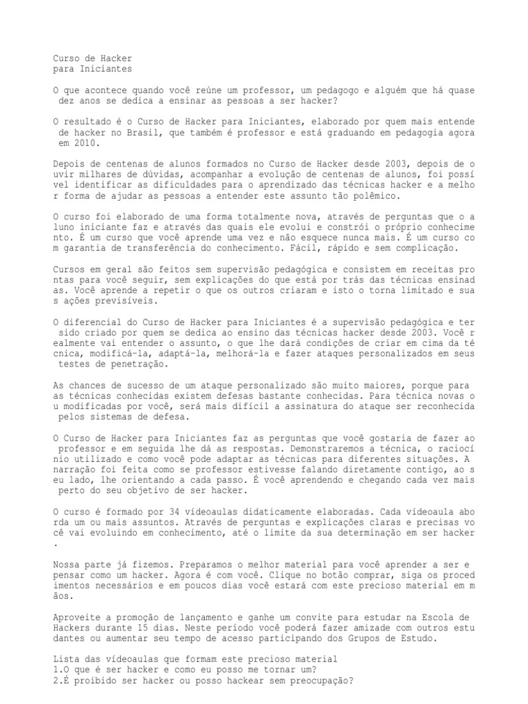 O resultado é o Curso de Hacker para Iniciantes, elaborado por quem mais entende
