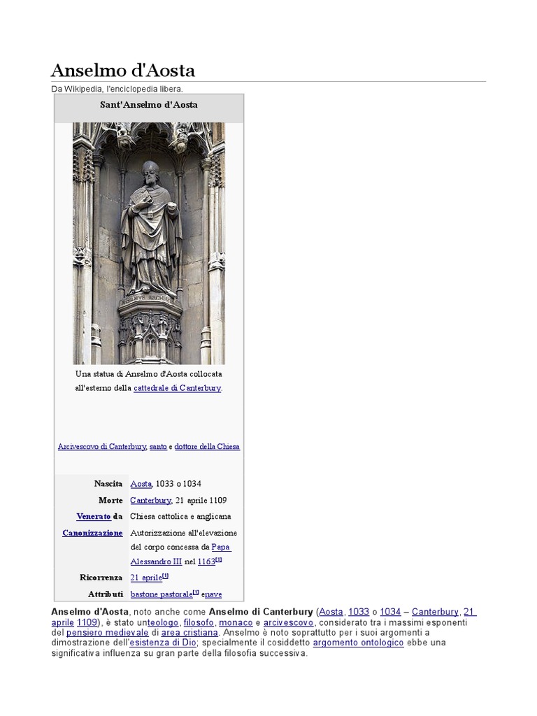 Anselmo d'Aosta, noto anche come Anselmo di Canterbury (Aosta, 1033 o 1034 Canterbury, 21