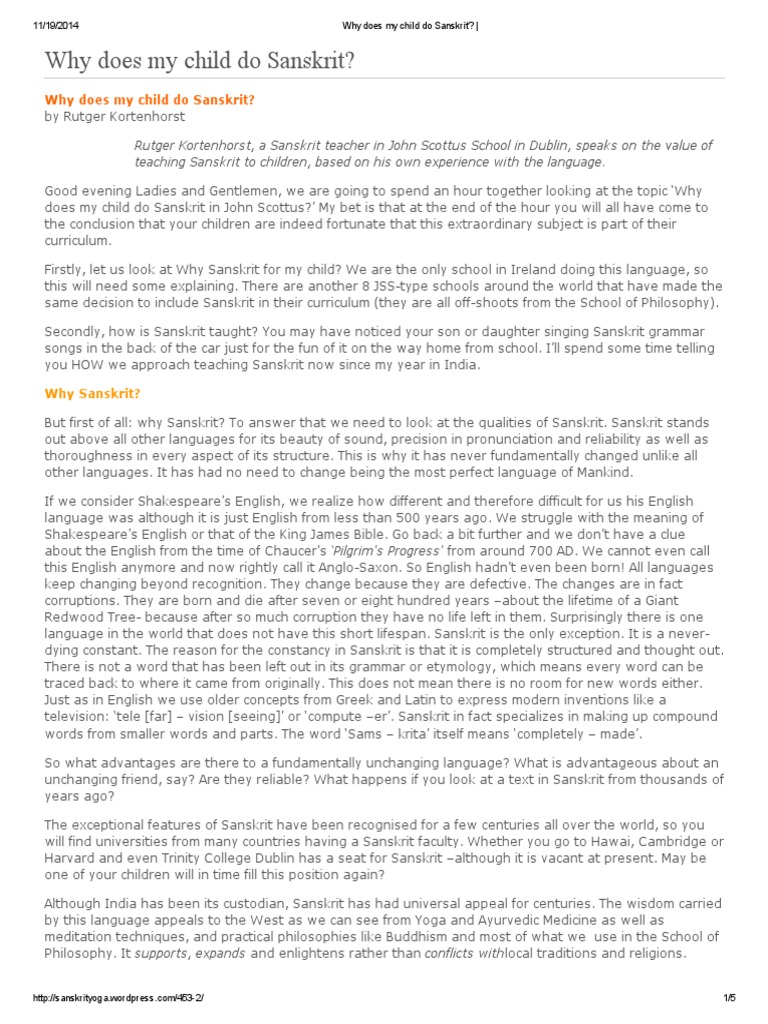 before they can read and write and know what an academic is. So why insist in teaching Sanskrit