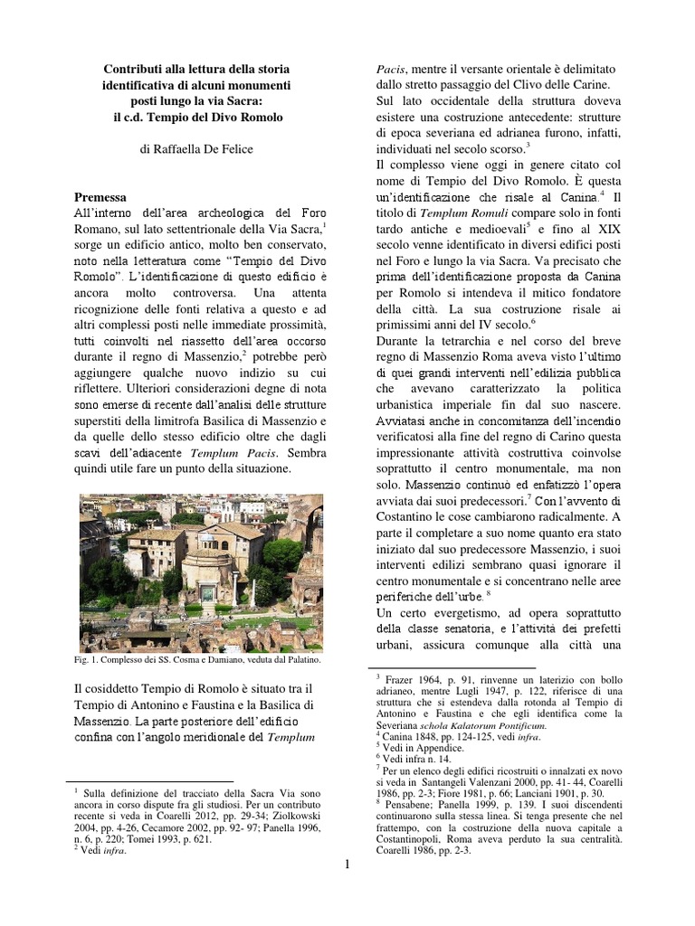 Papi E. - Templum Romuli in LTUR, IV, Roma 1999, pp. 210 212.