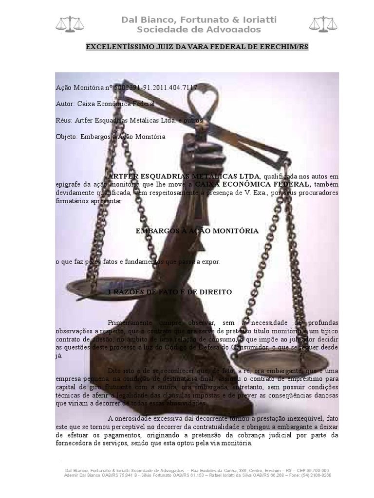 Ademir Dal Bianco OAB/RS 75.841 B - Silvio Fortunato OAB/RS 61.153 Rafael Ioriatti da Silva OAB/RS 66.268 Fone: (54) 2106-8260