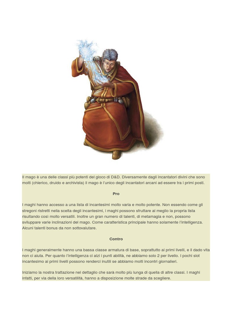 Iniziamo la nostra trattazione nel dettaglio che sar molto pi lunga di quella di altre classi. I maghi