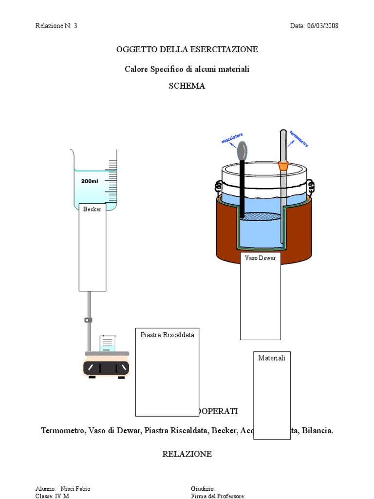 Termometro, Vaso di Dewar, Piastra Riscaldata, Becker, Acqua Distillata, Bilancia.