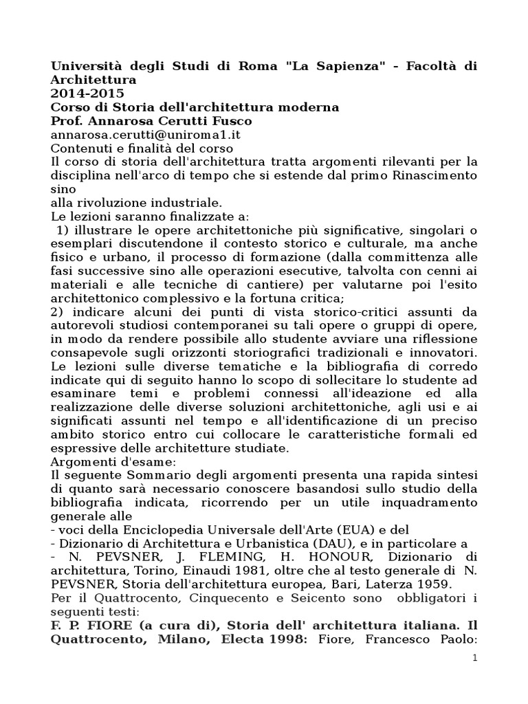 Il corso di storia dell'architettura tratta argomenti rilevanti per la