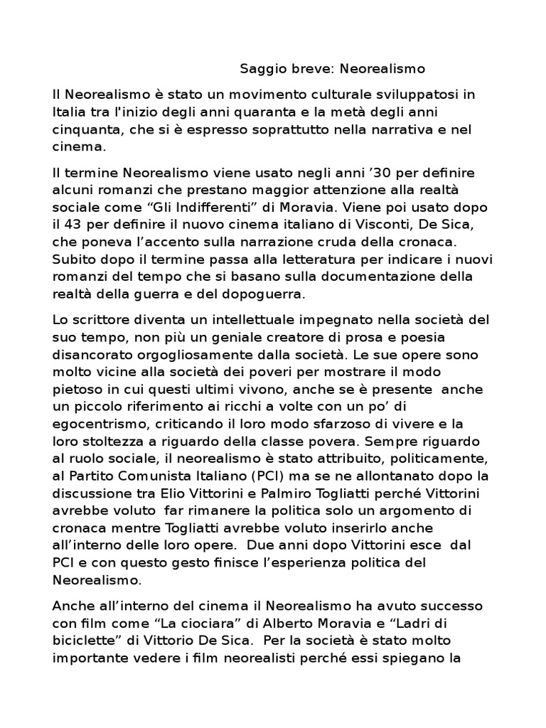 Saggio breve: Neorealismo