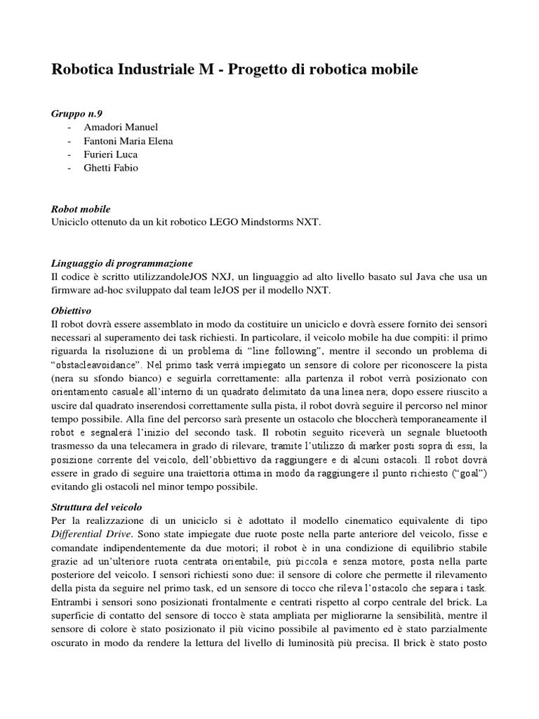 Robotica Industriale M - Progetto di robotica mobile