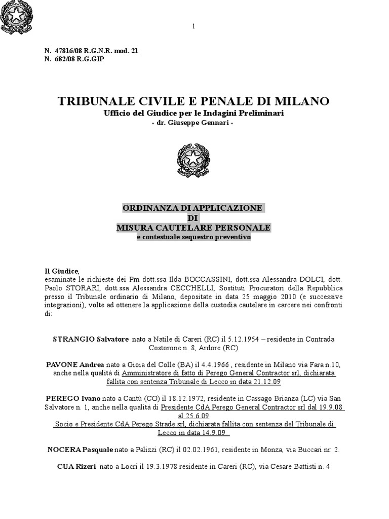esaminate le richieste dei Pm [Link] Ilda BOCCASSINI, [Link] Alessandra DOLCI, dott.