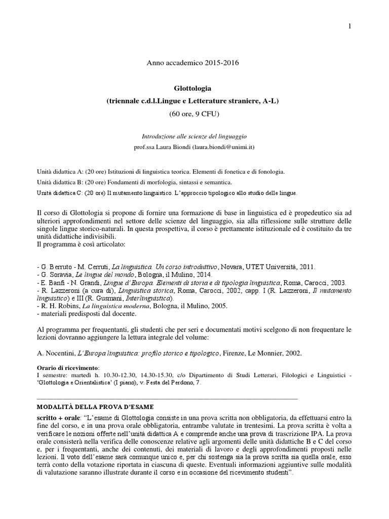 scritto + orale: Lesame di Glottologia consiste in una prova scritta non obbligatoria, da effettuarsi entro la