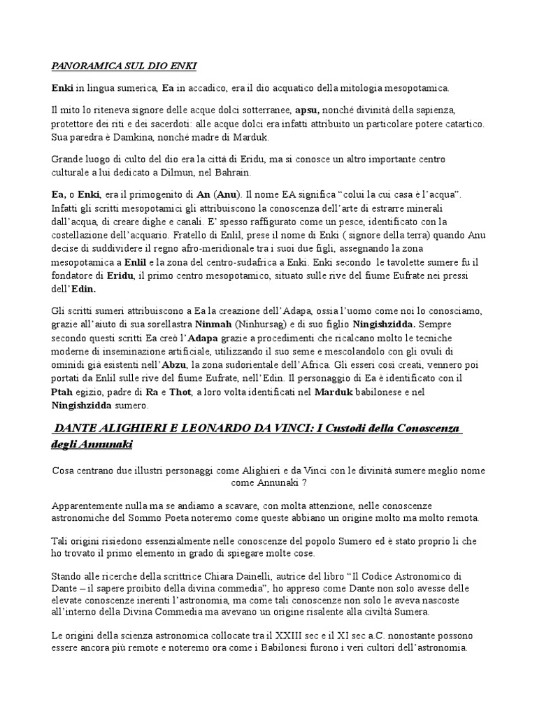 Cosa centrano due illustri personaggi come Alighieri e da Vinci con le divinit sumere meglio nome
