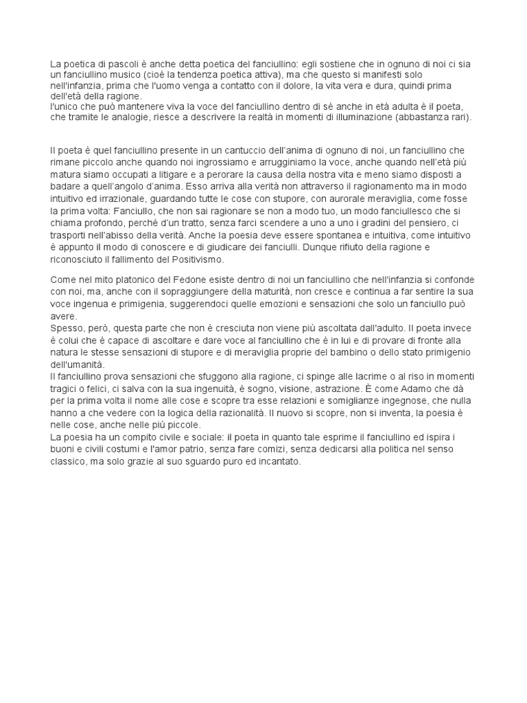 La poesia ha un compito civile e sociale: il poeta in quanto tale esprime il fanciullino ed ispira i