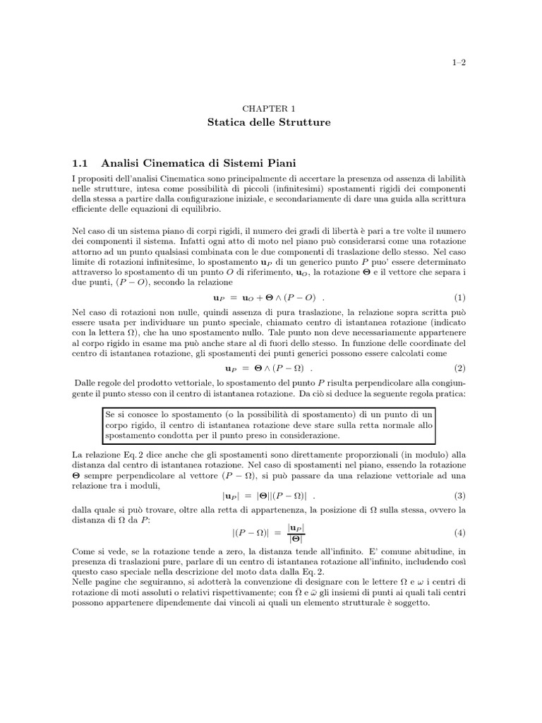 piano) a tre volte il numero dei corpi rigidi costituenti le stesse, e dei gradi di vincolo, che spiegheremo