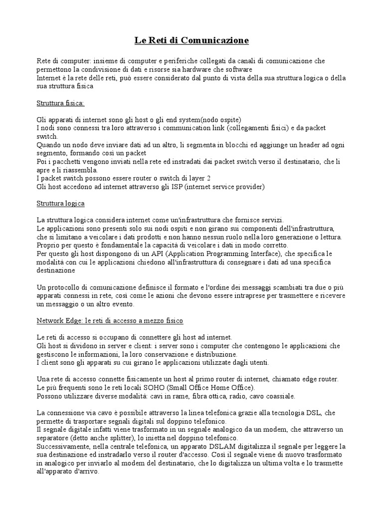 Le Reti di Comunicazione