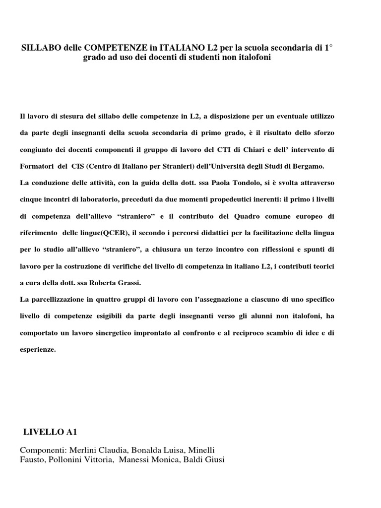 Il lavoro di stesura del sillabo delle competenze in L2, a disposizione per un eventuale utilizzo