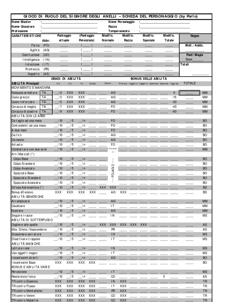 GIOCO DI RUOLO DEL SIGNORE DEGLI ANELLI – SCHEDA DEL PERSONAGGIO (by Porto)