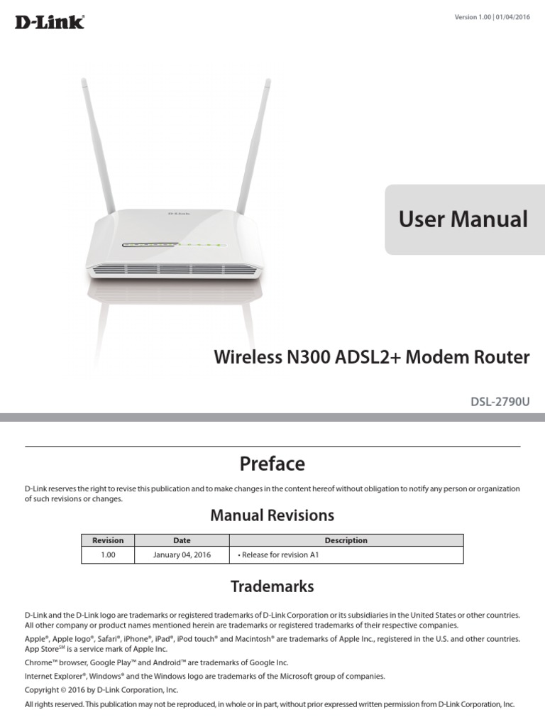 D-Link DSL-2790U Wireless N300 ADSL2+ Modem Router User Manual ii