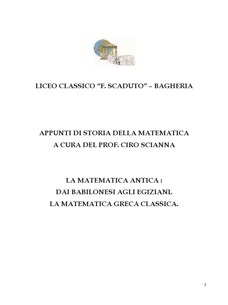 al periodo classico della storia greca, un periodo di grande attivit scientifica. La matematica,