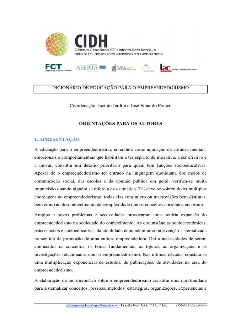 Coordenador: Jacinto Jardim — 968069643 Secretariado: Rita Balsa Pinho — eduempreendeportugal@gmail.com
