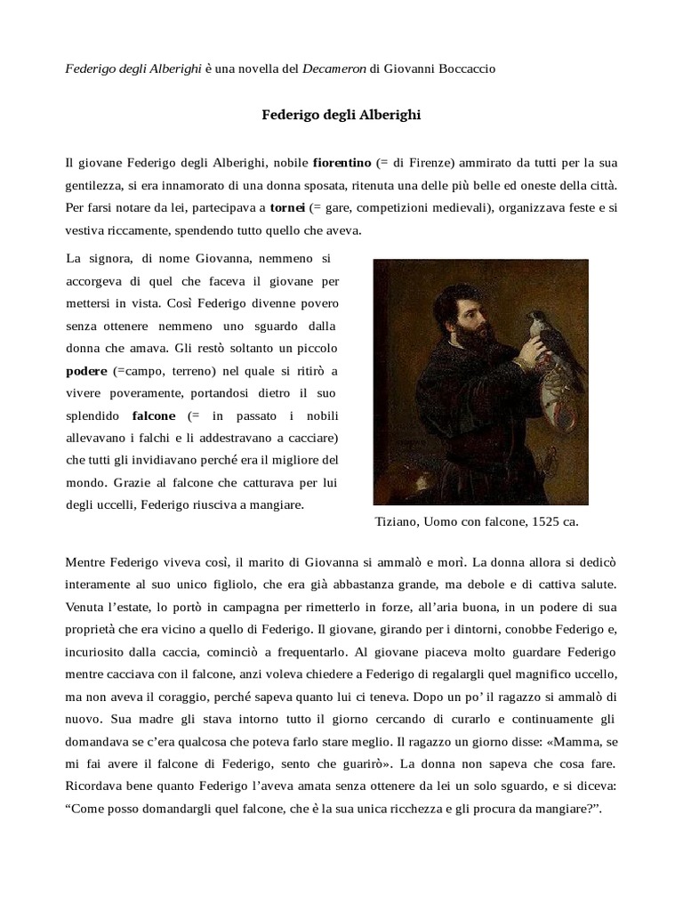 Federigo degli Alberighi una novella del Decameron di Giovanni Boccaccio