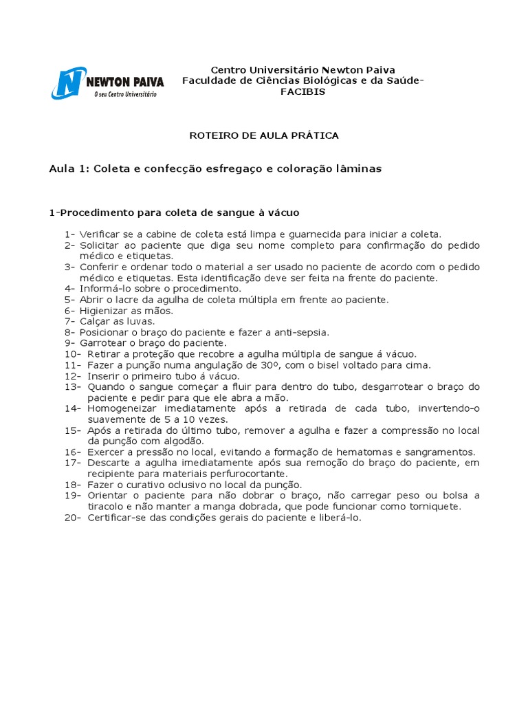Aula 1: Coleta e confeco esfregao e colorao lminas