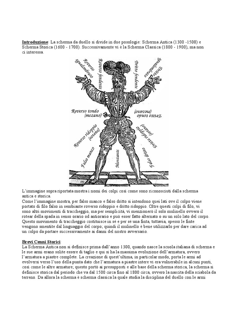 La Scherma Antica non si definisce prima dallanno 1300, quando nasce la scuola italiana di scherma e