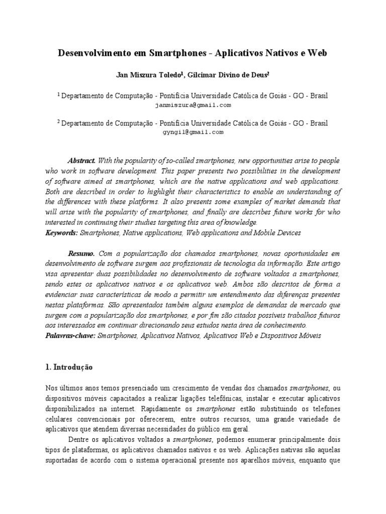 Palavras-chave: Smartphones, Aplicativos Nativos, Aplicativos Web e Dispositivos Mveis