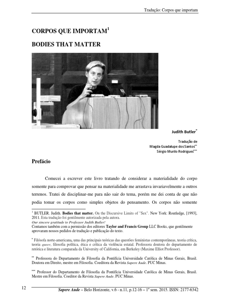 BUTLER. Judith. Bodies that matter. On the Discursive Limits of "Sex". New York: Routledge, [1993],