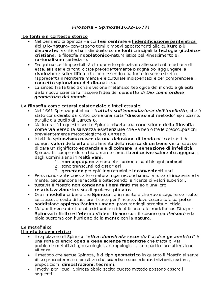 Nel pensiero di Spinoza -la cui tesi centrale l'identificazione panteistica