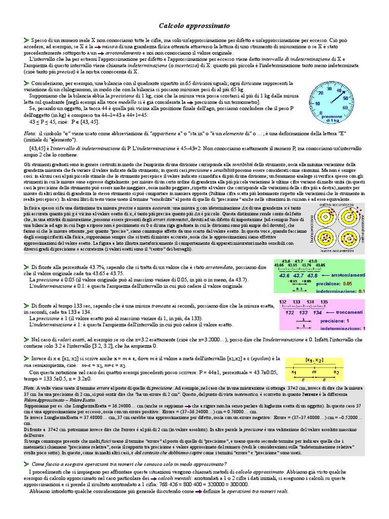 sa stimare la precisione dell'approssimazione; ad esempio se scrivo: popolazione 1.5 milioni non intendo necessariamente dire che 1.5 milioni un