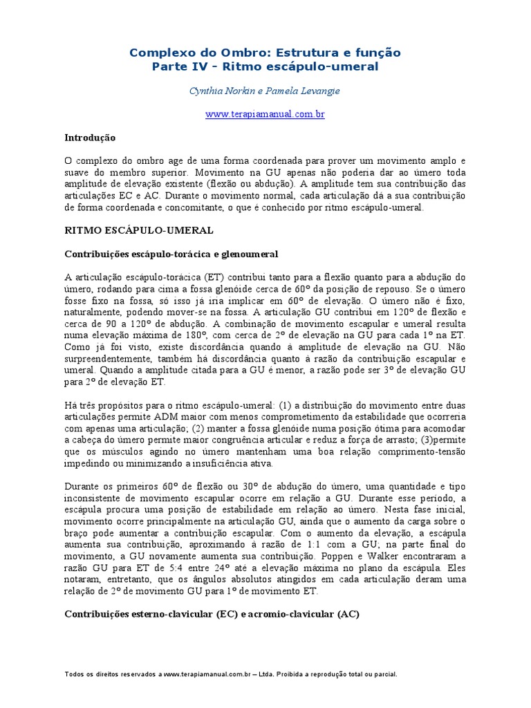 Ritmo escpulo-umeral envolve a contribuio das articulaes AC e EC, assim como da ET
