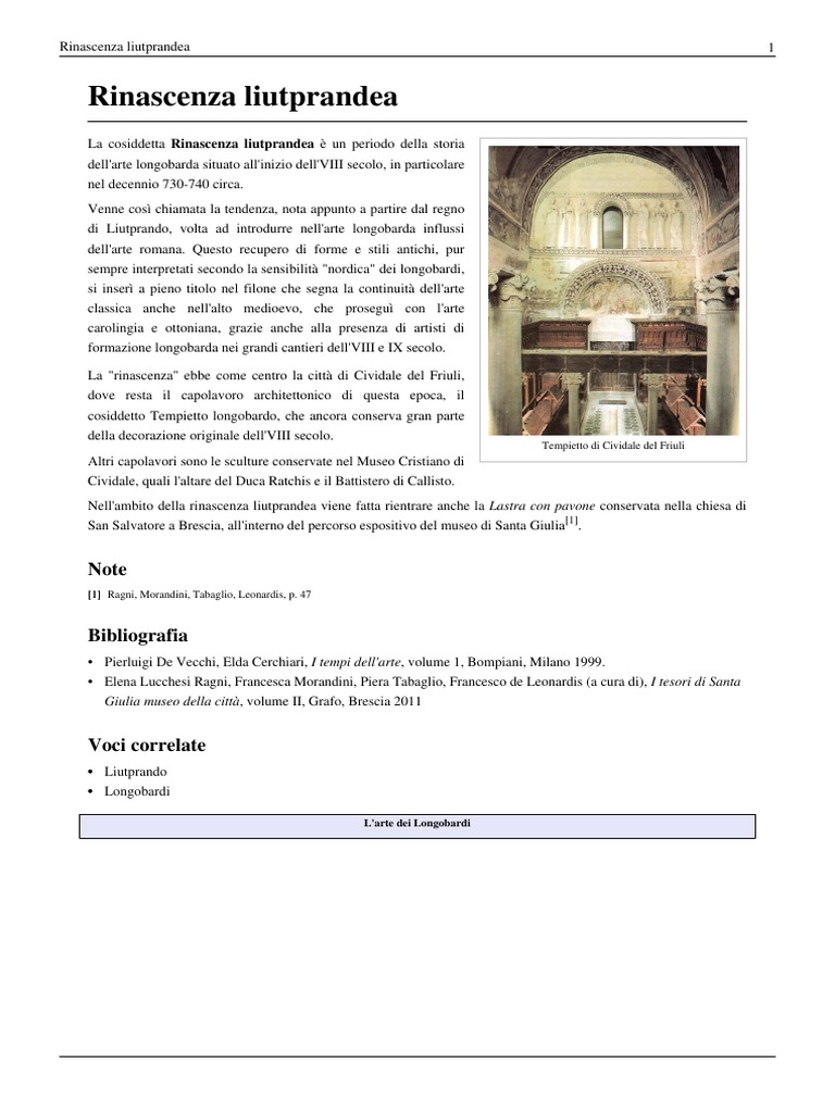 La cosiddetta Rinascenza liutprandea un periodo della storia