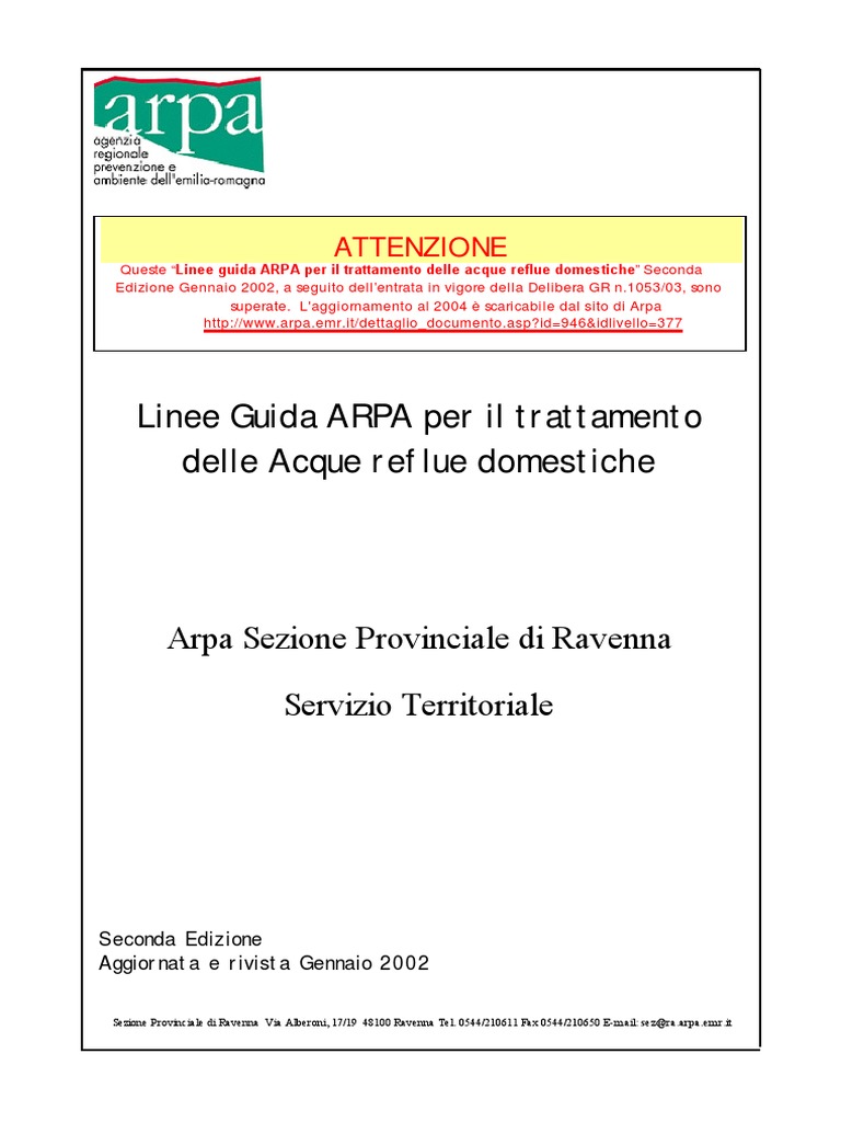 Queste Linee guida ARPA per il trattamento delle acque reflue domestiche Seconda