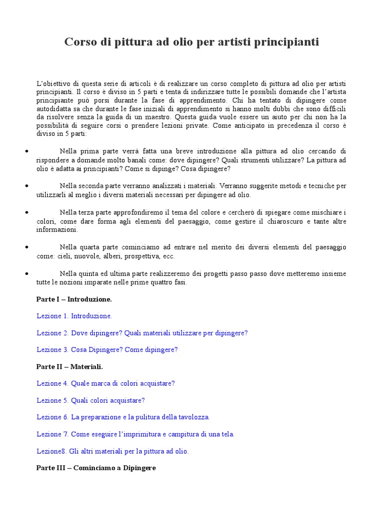 La prima parte sar un introduzione alla pittura ad olio. Cercher di rispondere alle domande che tipicamente