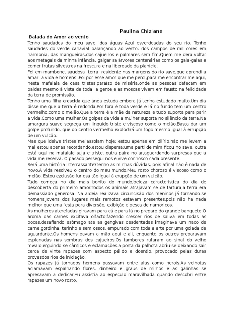 Foi em mambone, saudosa terra residente nas margens do rio save,que aprendi a